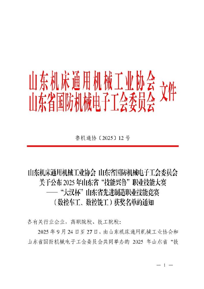 山東省先進制造職業技能競賽(數控車工、數控銑工)獲獎通知.p···…